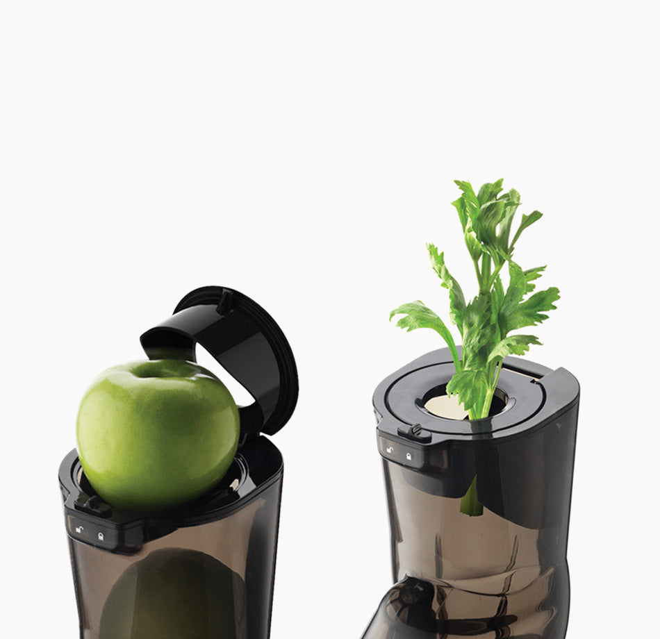 מסחטת מיצים בכבישה איטית מוגנת בפטנט – מסחטת המיצים בכבישה איטית של Kuvings משתמשת בבורג אנכי, שמבצע לחיצה חזקה ועמוקה יותר על המרכיבים. הליך זה מקרב את הטעם והרכיבים התזונתיים של הפירות והירקות לאלו של חומר הגלם המקורי.