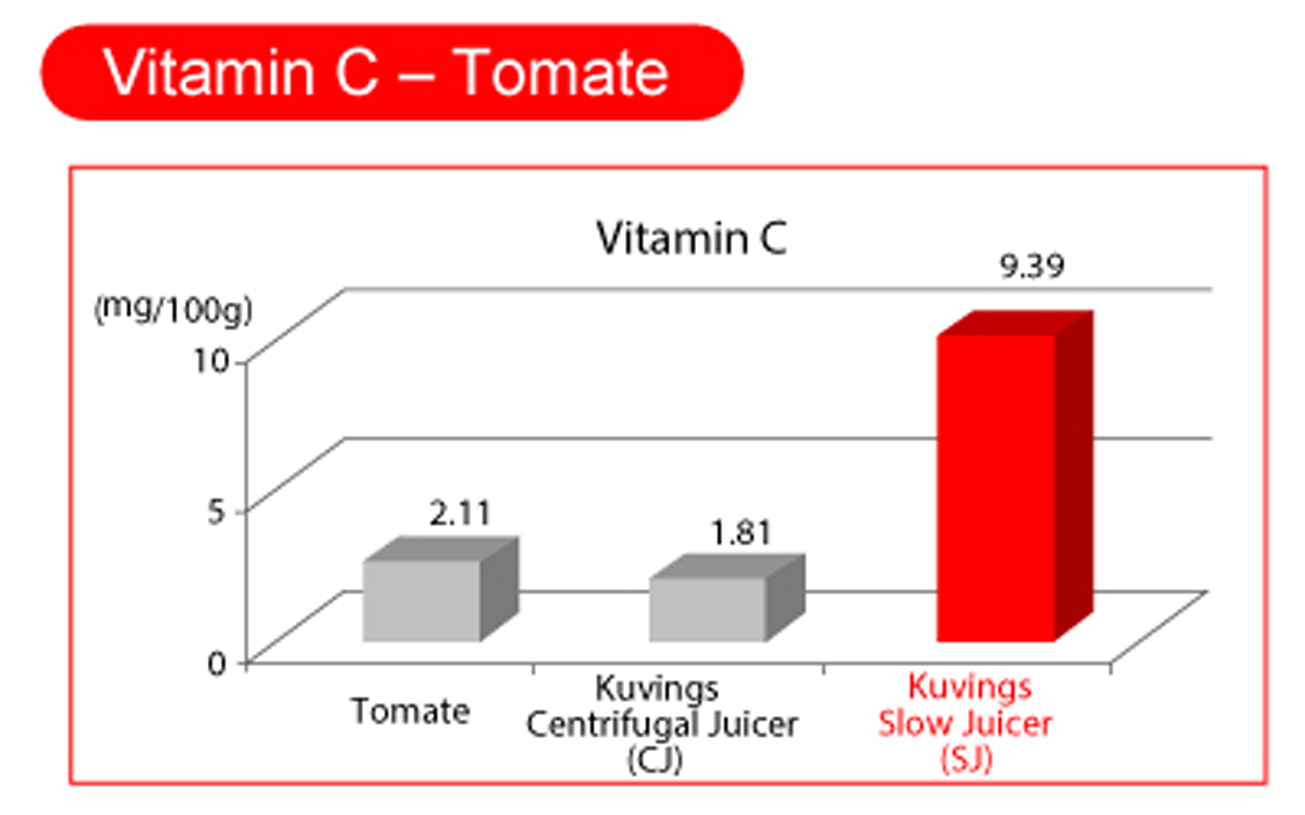 תכולת ויטמין C במיץ המופק ממסחטה איטית גבוהה פי 5.2 לעומת המיץ המופק ממסחטה צנטריפוגלית. חמצון הוא גורם נוסף לרמות נמוכות של ויטמין C במיץ.