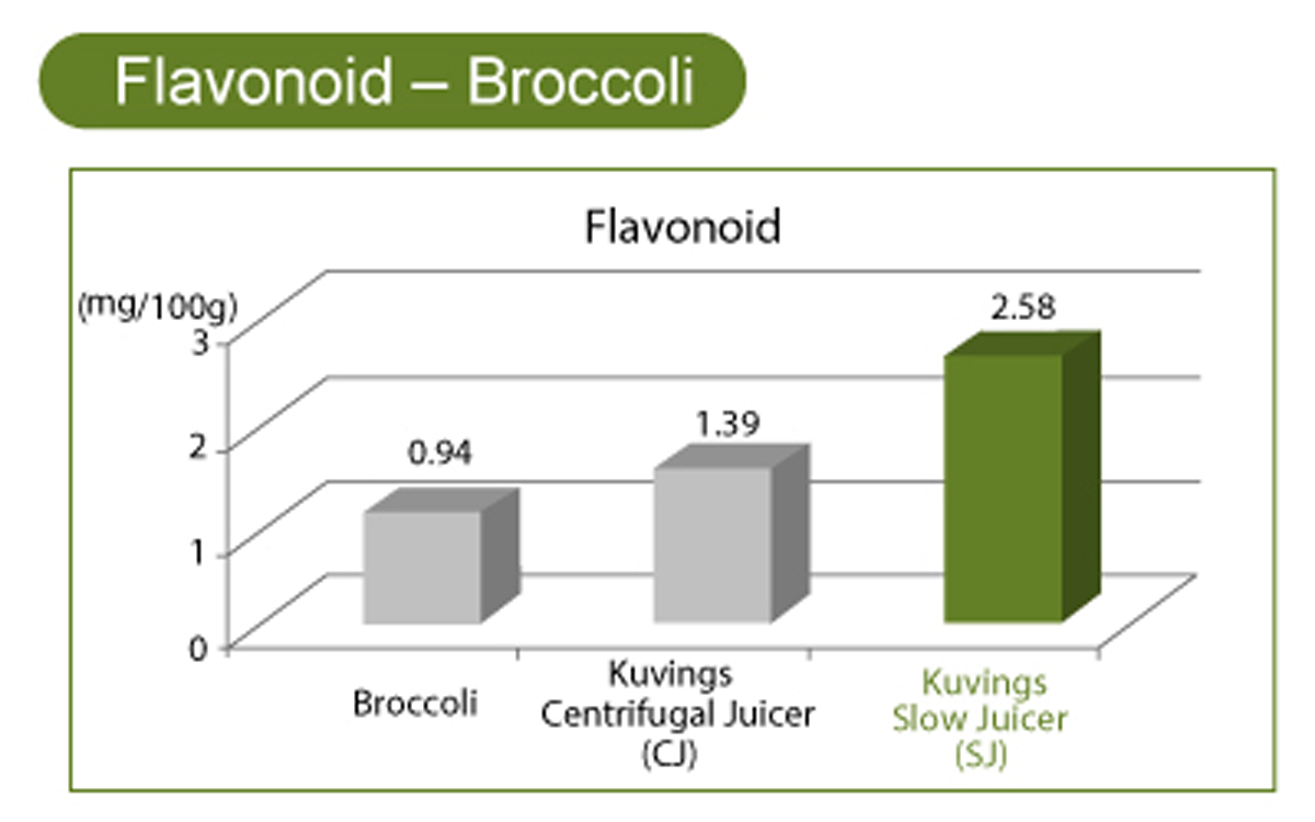 פלבנואיד: מיץ המופק ממסחטה איטית מכיל פי 1.5 יותר פלבנואידים לעומת פירות ומיץ המופק ממסחטה צנטריפוגלית.