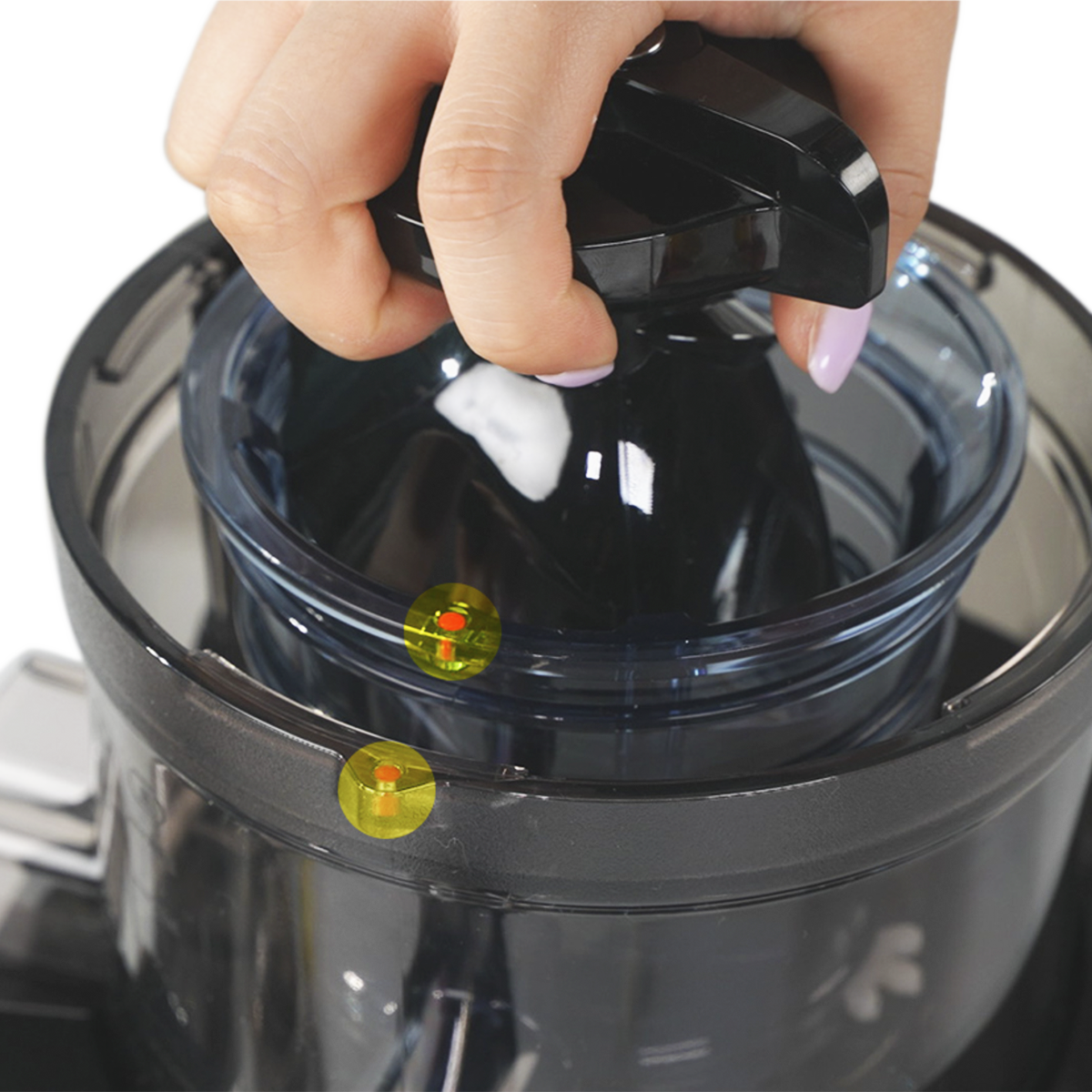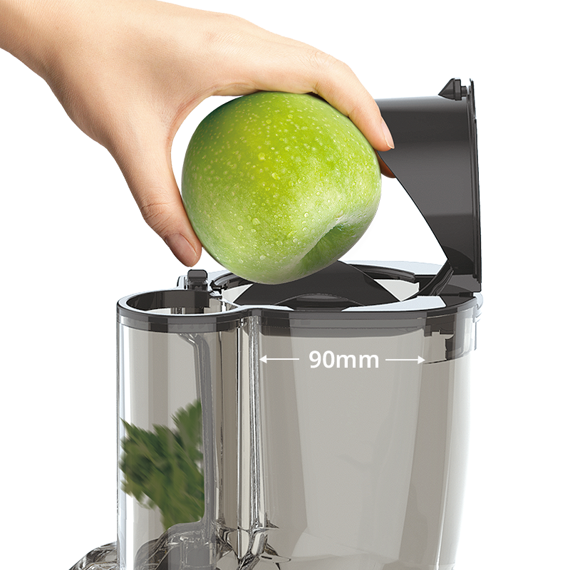 ה-Mega Hopper, מצנח ההזנה בגודל 90 מ"מ, רחב יותר מהדגמים הקיימים על מנת שיוכל לאפשר להפיל את המרכיבים הגדולים יותר מבלי לחתוך אותם, מה שמוביל לעיבוד מיצים מהיר.